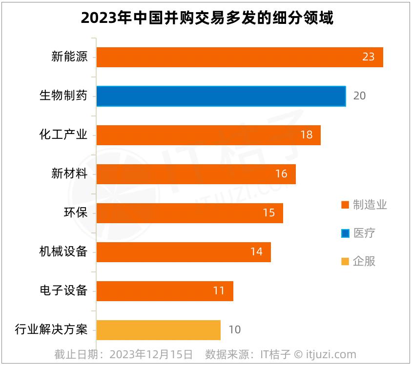 具体到更细分的领域,2023年国内并购事件最多发的是新能源赛道,这一点,与国际上生物制药赛道的并购交易最多有所不同。