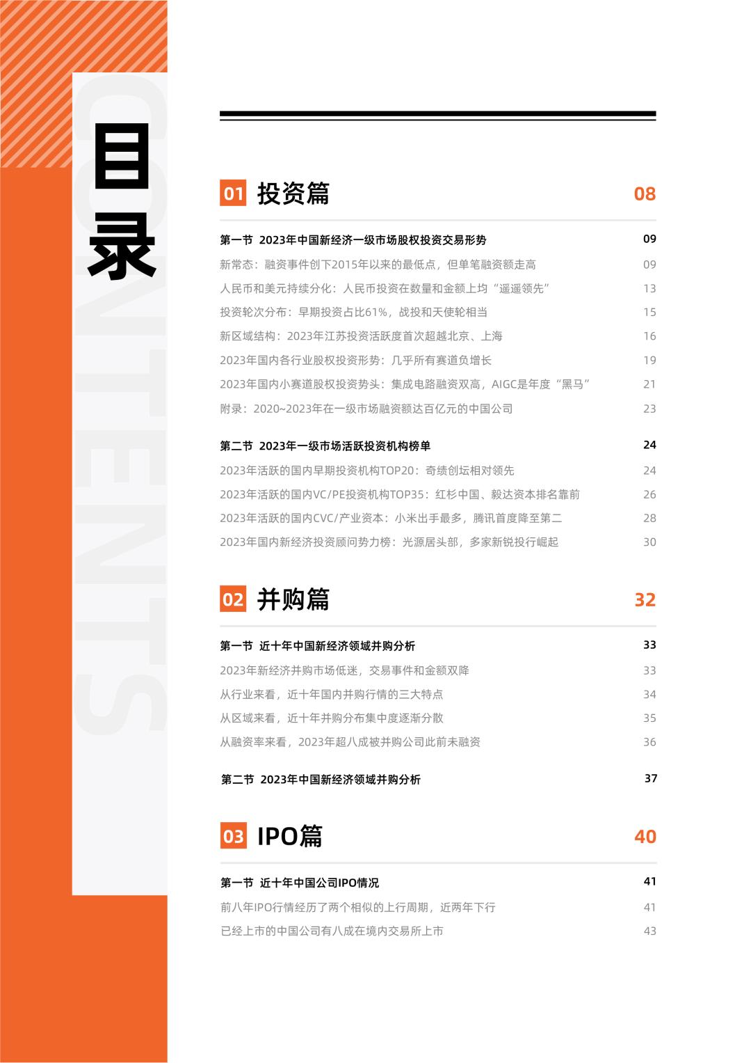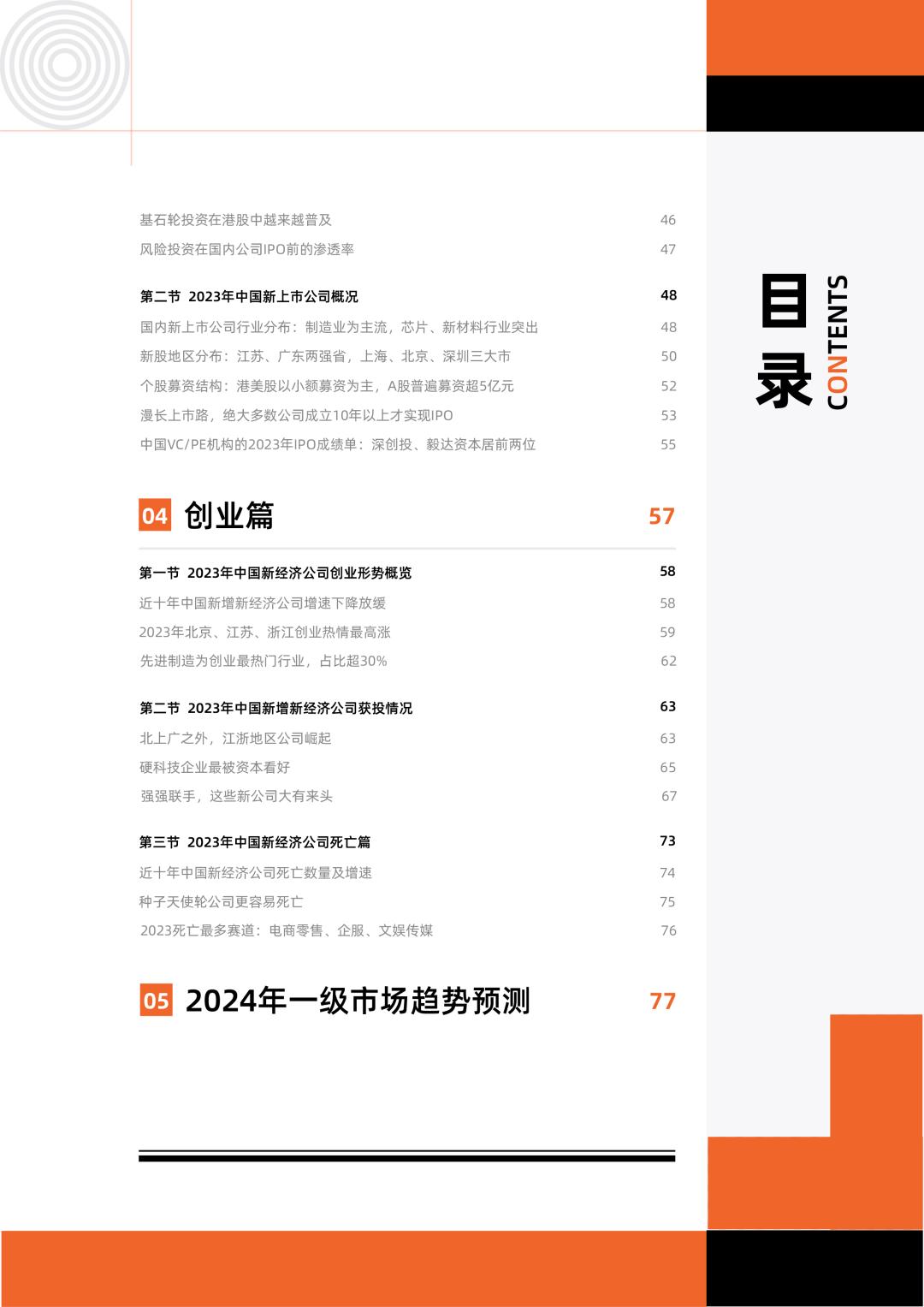 报告基于翔实的itjuzi 数据库、分析师的深度行业洞察,涵盖对中国新经济创投市场创业、投资、并购、IPO 等方面在 2023 年表现的数据洞察与解读,同时有丰富而深入的明星公司和交易案例解读,以及过往历年的变化趋势观察。